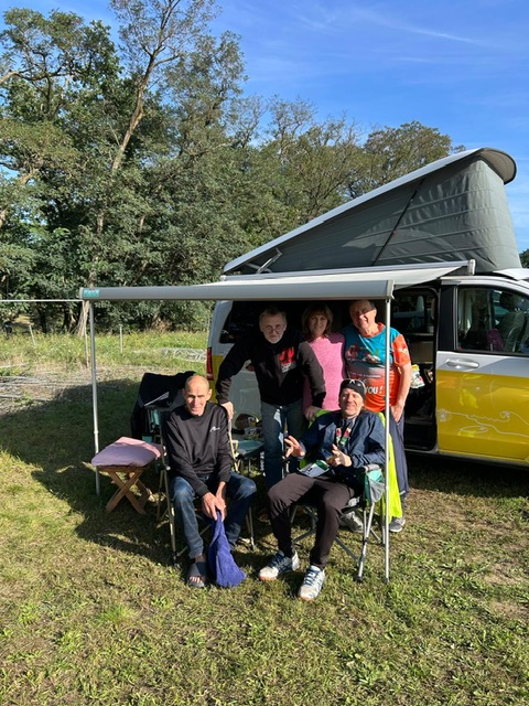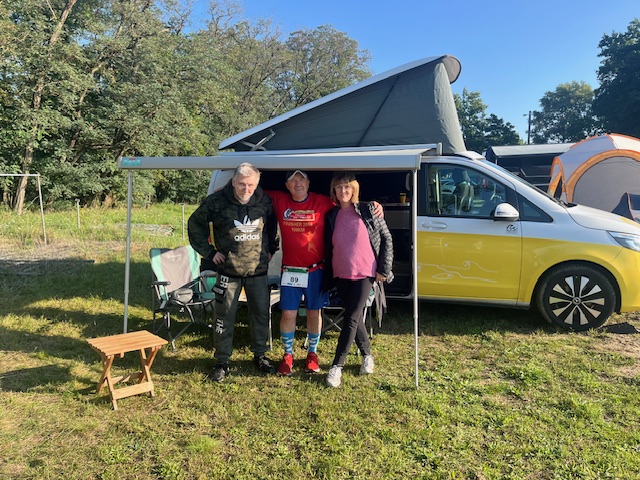 Die ersten beiden Boxenstopps nach km 20 und km 40 – meine Rundenzeiten wurden wie erwartet langsamer – waren im Campingstuhl unter dem Vordach des Campers und dank der Unterstützung von Ela und Martin ein wahrer Genuß und in keinster Weise mit meinen Erholungspausen im letzten Jahr zu vergleichen. Unser Camper stand auch an einer strategisch günstigen Stelle. Genau dort, wo die einen Laufenden von der Runde zurück in Richtung Verpflegungsspunkt kamen und die anderen von dort wieder auf die große Runde aufbrachen. Es gab viel zu sehen und zu bestaunen und Ela und Martin hatten viel Spaß.